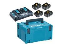 Batterioplader Til Elværktøj Makita LXT Med 4 X 18 V 6,0 Ah Liion Batterier Og Kuffert